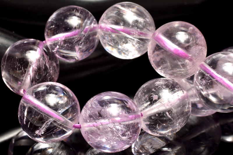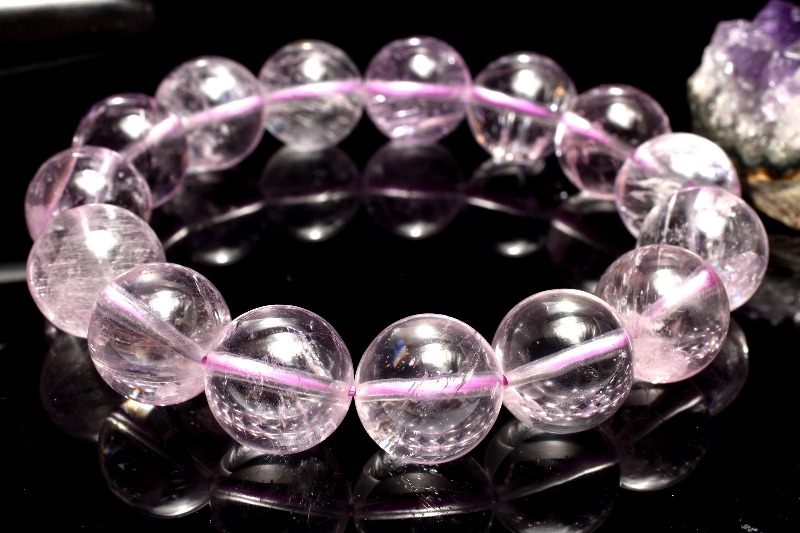 【1点物】透明繊維状クラック◇無垢 クンツァイト 13.5mm ブレスレット _MA9871