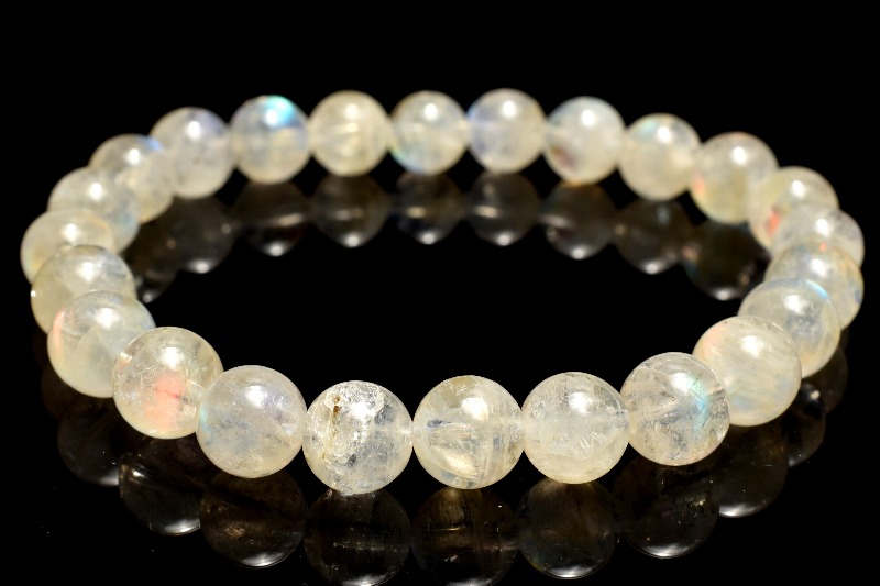 【1点物】AAオーロラシラー☆マダガスカル産 レインボームーンストーン 7.5mm ブレスレット _MA9888