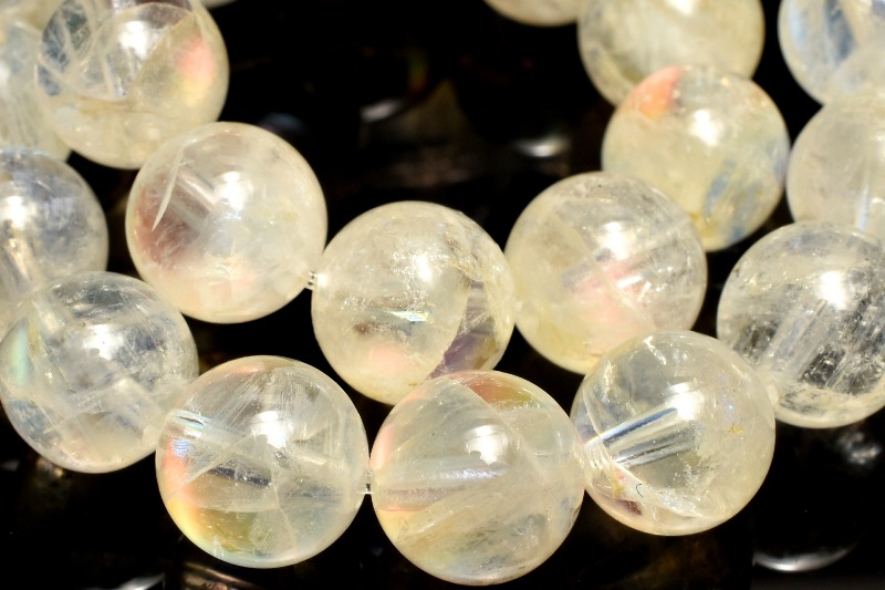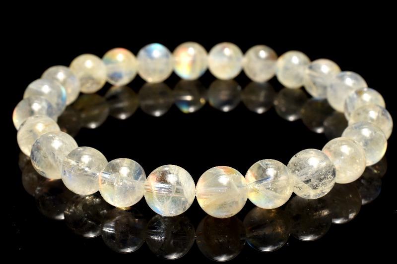 【1点物】AAオーロラシラー☆マダガスカル産 レインボームーンストーン 7.5mm ブレスレット _MA9889