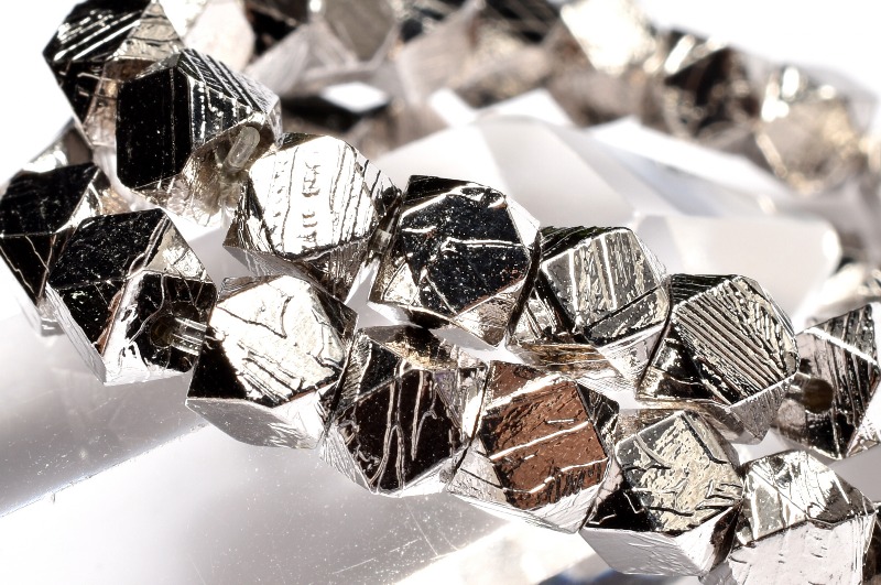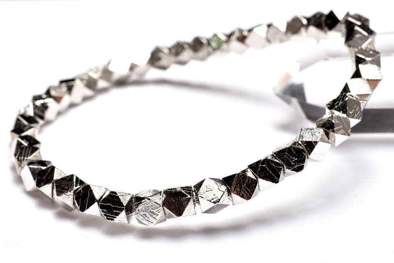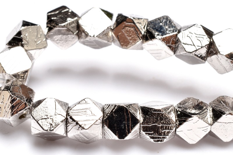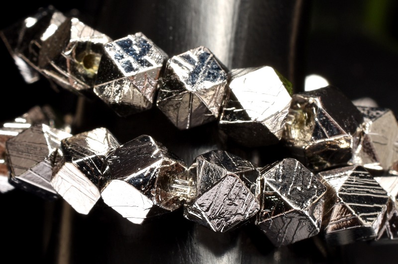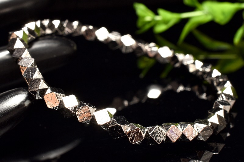 【1点物】メテオライト(アルタイ隕石) 4x4mm シルバーコーティング キューブカット ブレスレット _MA9910