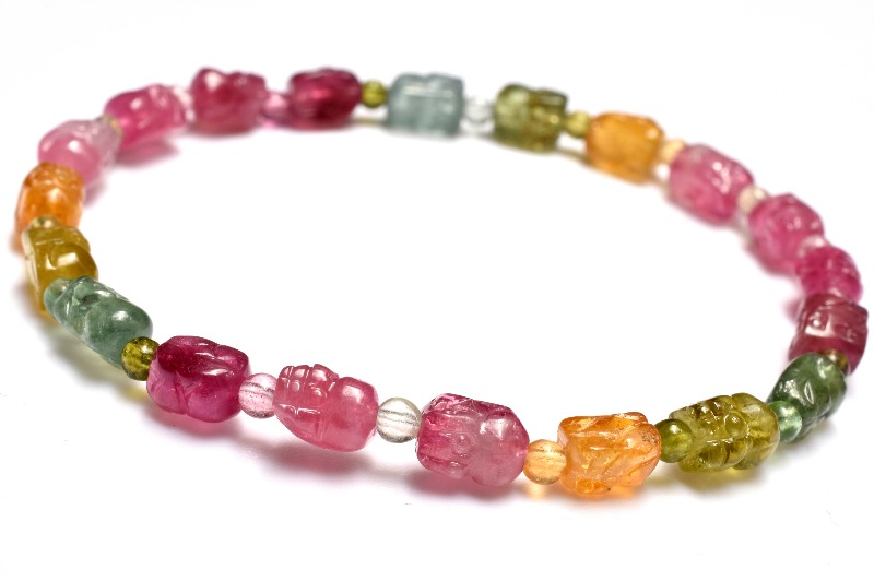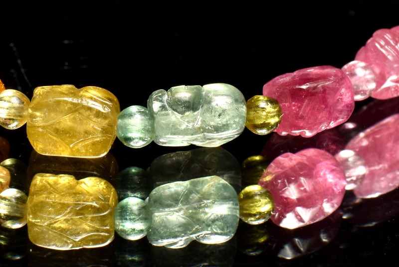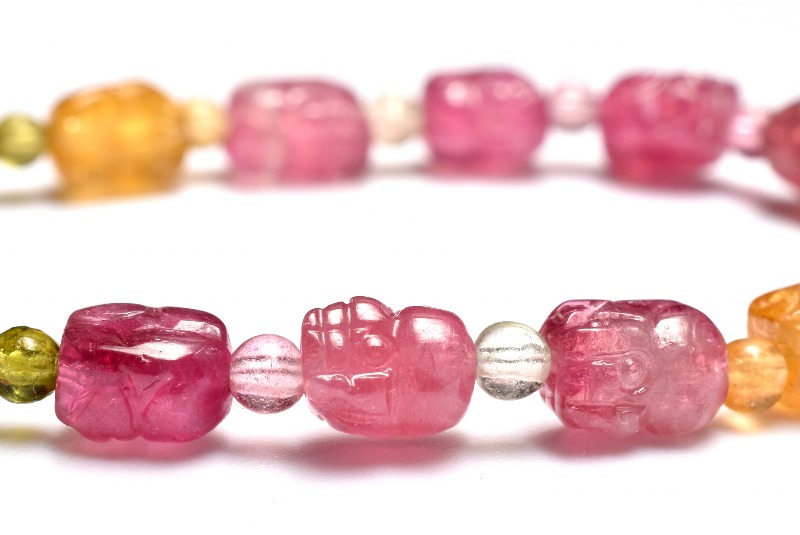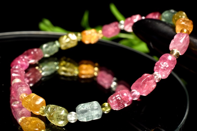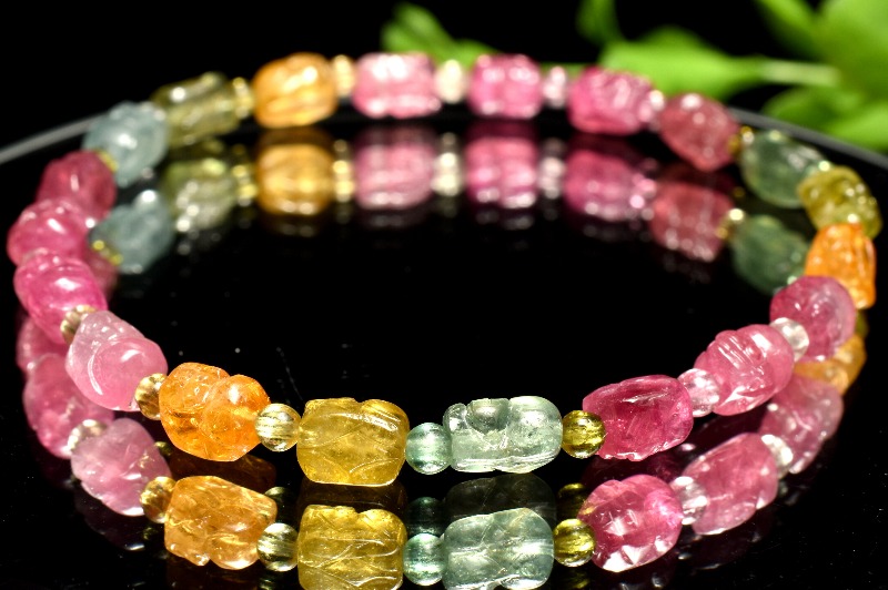 【1点物】AAA☆透過性あり トルマリン 5.5-6.5x4.5(丸玉2.5)mm 貔貅彫刻 ブレスレット _MA9937