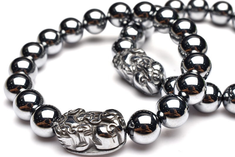健康のお守りに! テラヘルツ鉱石 10(丸玉21x12)mm 貔貅彫刻 ブレスレット 1個売り _BG6054-10