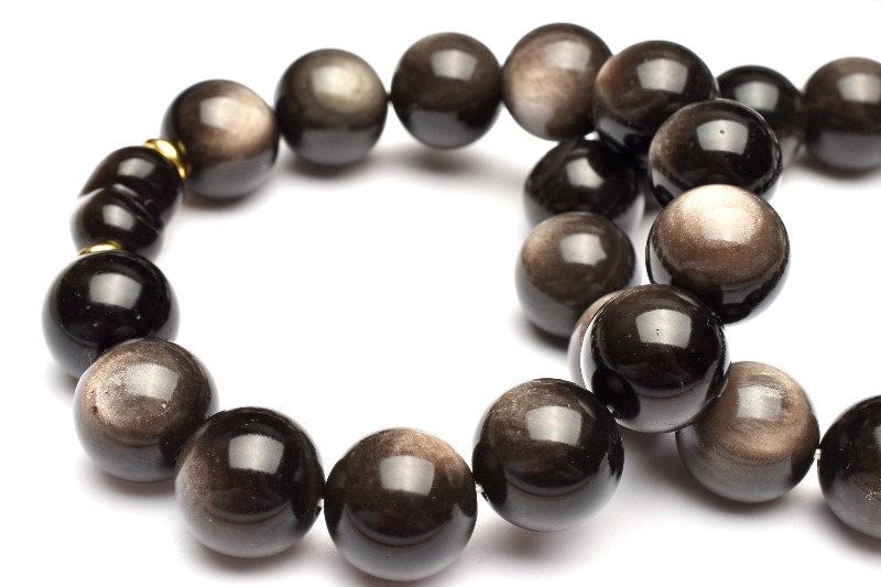 材質シルバーオブシディアン 14(丸玉18x14)mm 産地:メキシコ