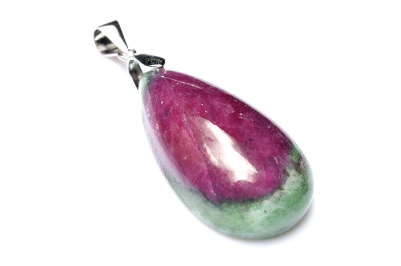 緑色の部分をゾイサイト、赤〜桃色の部分がルビーでそれらが混ざりあった天然石です。