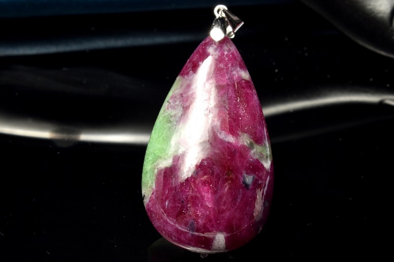 緑色の部分をゾイサイト、赤〜桃色の部分がルビーでそれらが混ざりあった天然石です。