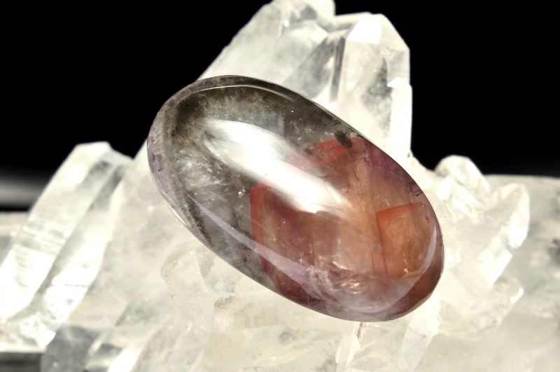 分析をしたところ、このオーラライトー23には、アメジストをベースにチタナイト、カコクセナイト、レピドクロサイト、アジョイト、ヘマタイト、マグネタイト、パイライト、ゲーサイト、パイロリューサイト、金、銀、プラチナ、ニッケル、銅、鉄、リモナイト、スファレライト、コヴェライト、チャルコパイライト、ガイアライト、エピドート、ボルナイト、そしてルチルが含まれることがわかったそうです。