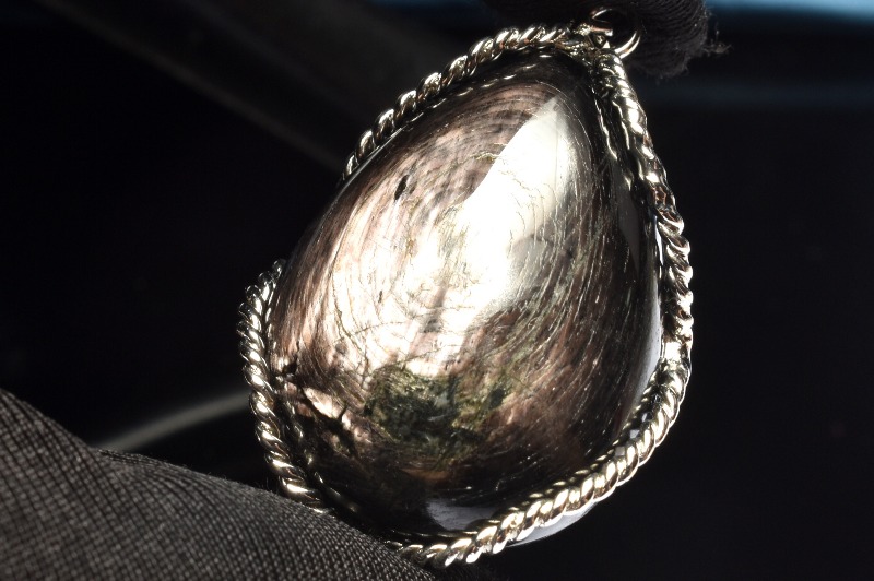 【1点物】Silver925◇金属光沢 ハイパーシーン(紫蘇輝石) 29x22mm ドロップ ペンダントトップ _PC6385
