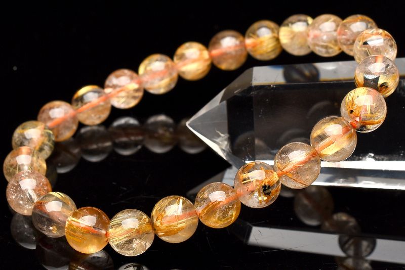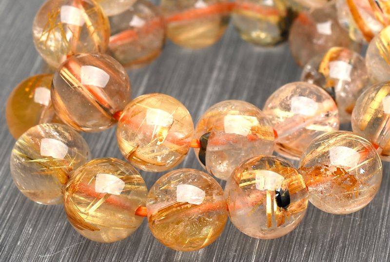 材質ヘマタイトインタイチンルチルクォーツ 8mm 産地:ブラジル