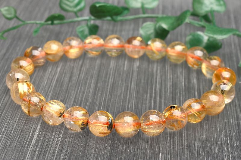 【1点物】母岩入り ヘマタイトインタイチンルチルクォーツ 8mm ブレスレット _U7638