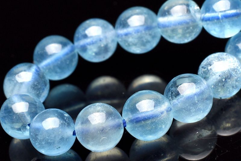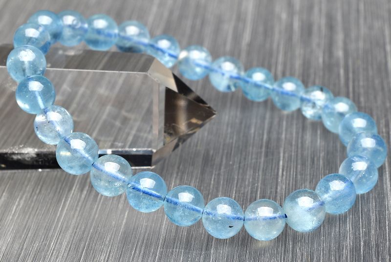 【1点物】透過性あり◇海色ブルー アクアマリン 7mm ブレスレット _U7645
