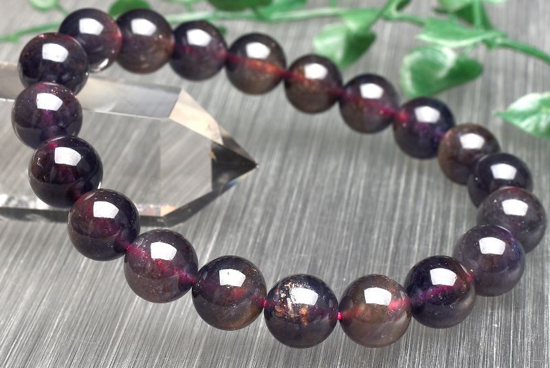 【1点物】透過&多色性抜群! アイオライトサンストーン 10mm ブレスレット _U7661