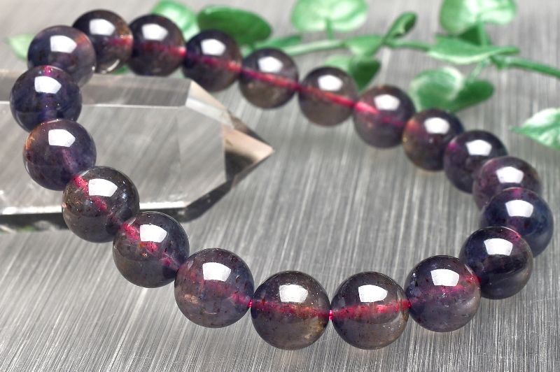 【1点物】透過&多色性抜群! アイオライトサンストーン 10mm ブレスレット _U7662