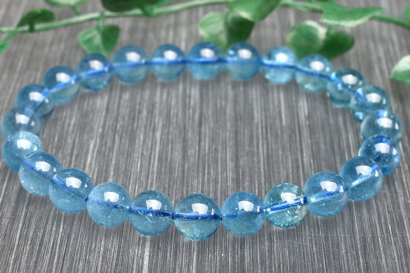 【1点物】AAA☆美しいブルー サンタマリアアクアマリン 7.5mm ブレスレット _U7698