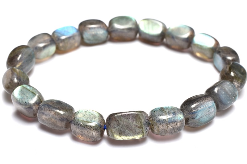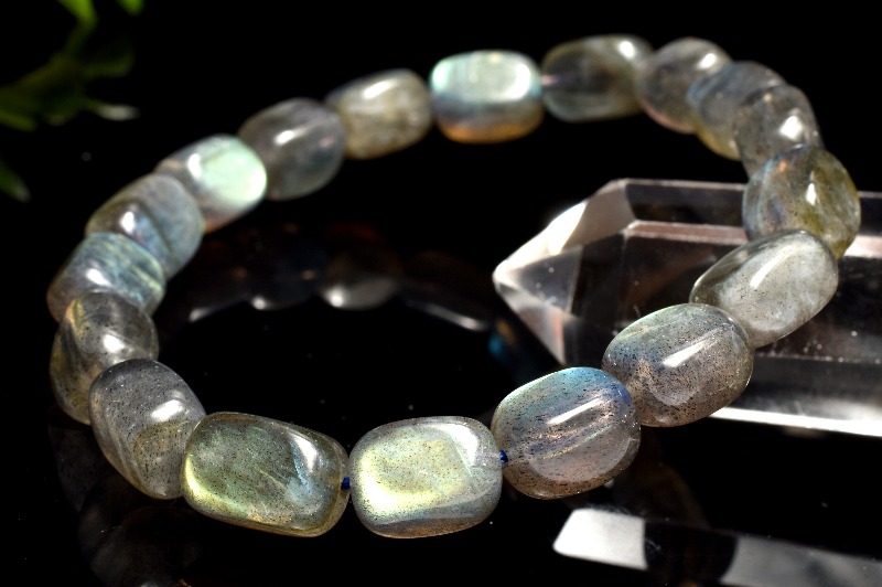 【1点物】レインボーシラー ラブラドライト 9-11x7-8mm チューブカット ブレスレット _MA9964