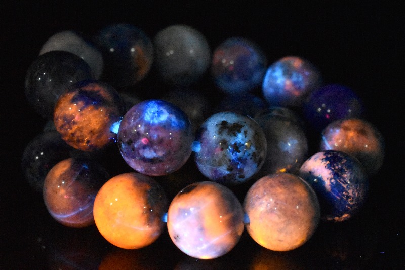 同じファトクロミズムの特徴をもつ石たちの中でも、ハックマナイトは紫外線を当ててから一定時間変色が持続するという珍しい性質があり、コレクターの間でも高い人気を誇ってます。
