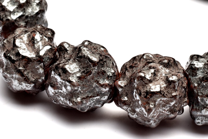 パワーストーンとして流通している一般的なギベオンは銀色をしていますが、これは模様を見せやすくするため、表面をロジウムコーティングしているからです。
