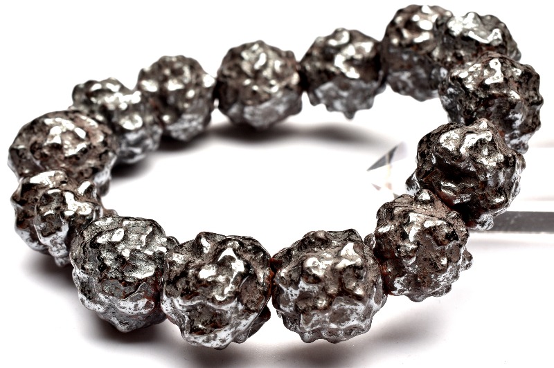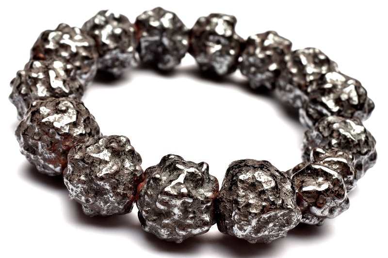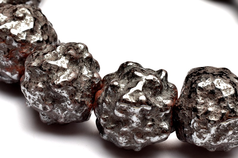 パワーストーンとして流通している一般的なギベオンは銀色をしていますが、これは模様を見せやすくするため、表面をロジウムコーティングしているからです。