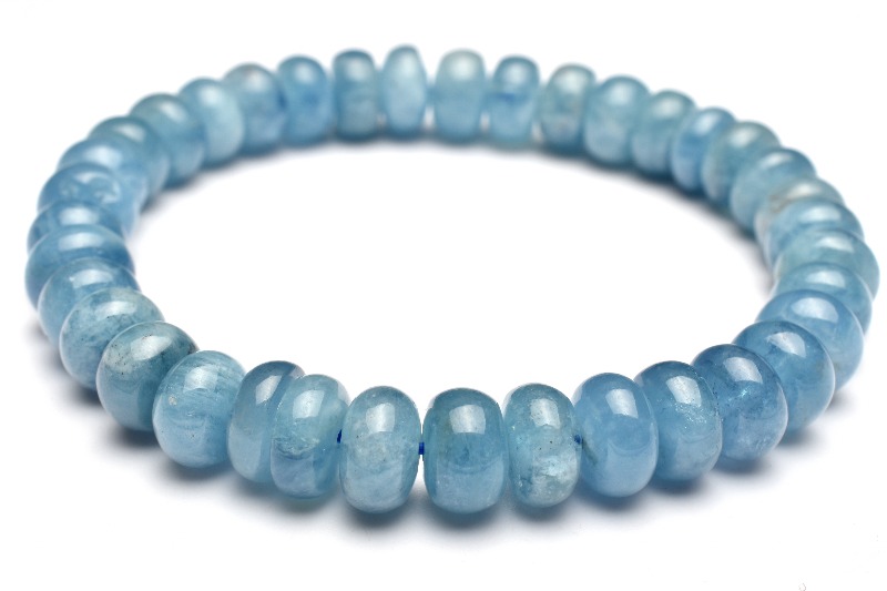 【1点物】海色ブルー アクアマリン 4-5x8mm ボタン ブレスレット _MB71