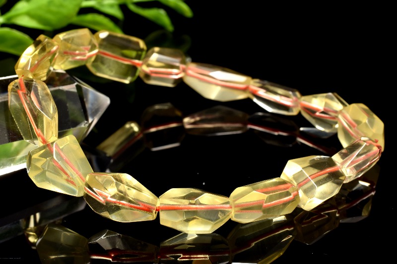 【1点物】AA透明◇美しい輝き シトリン 12-15x7-11mm 原石ラフカット ブレスレット _MB108