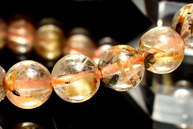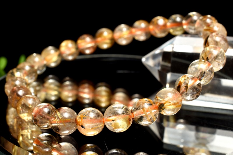 材質ヘマタイトインタイチンルチルクォーツ 7mm 産地:ブラジル