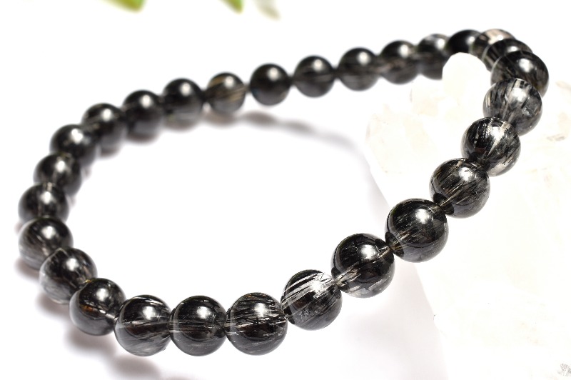 材質ブラックトルマリンインクォーツ 6.5mm 産地:ブラジル