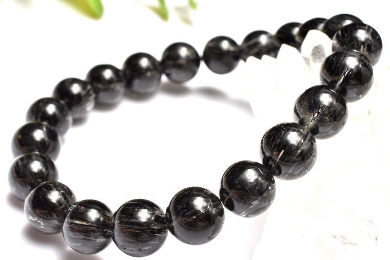 材質ブラックトルマリンインクォーツ 9mm 産地:ブラジル