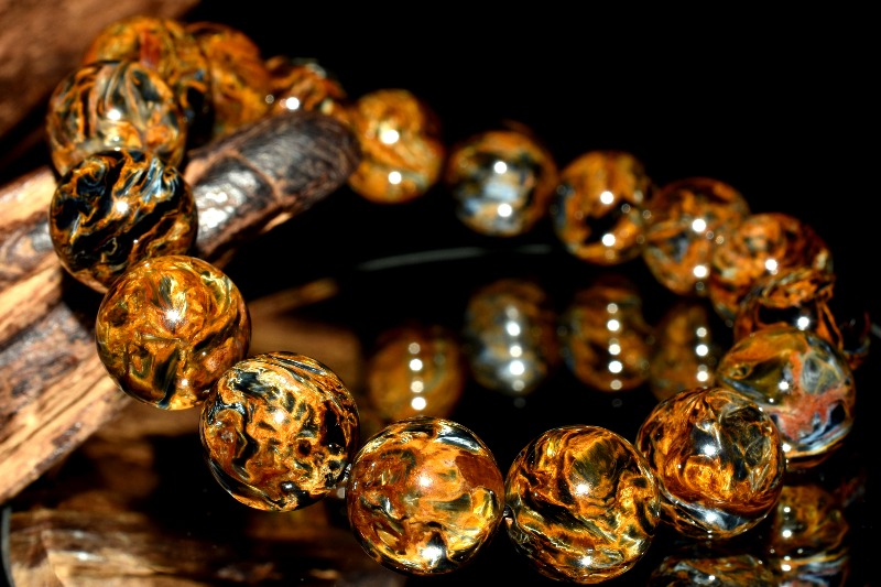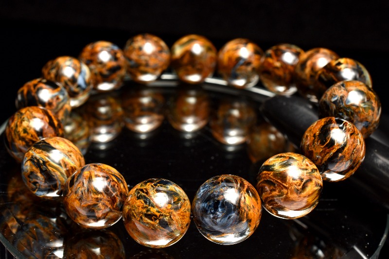一般的にはタイガーアイ系の茶褐色が多いですが、ブルータイガーの青系もあり、茶と青の混じったものもあります。