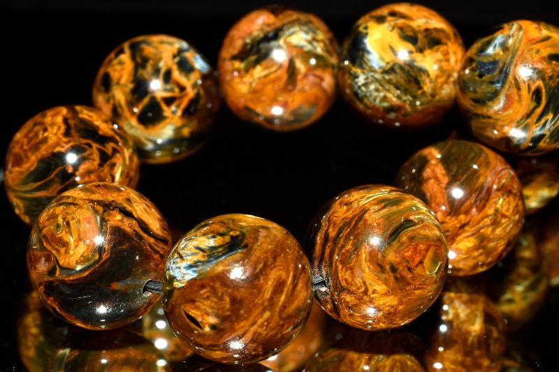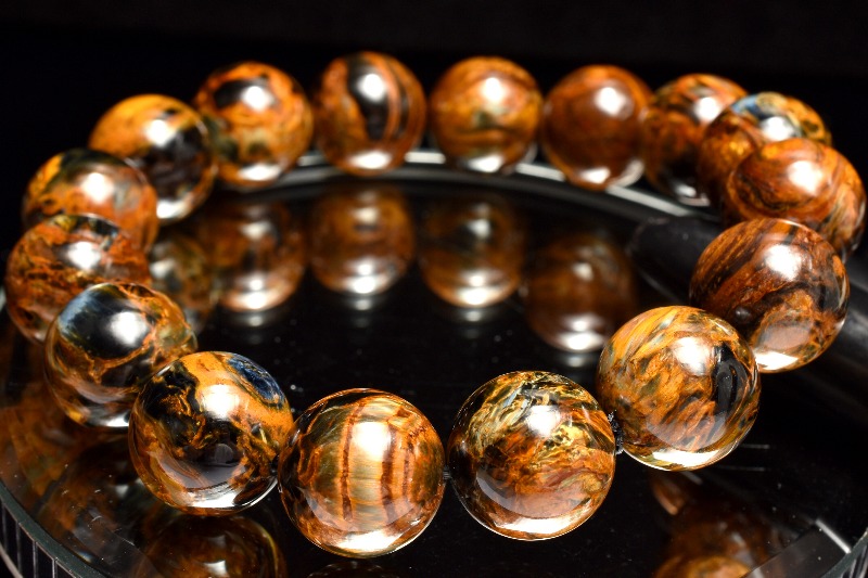 一般的にはタイガーアイ系の茶褐色が多いですが、ブルータイガーの青系もあり、茶と青の混じったものもあります。