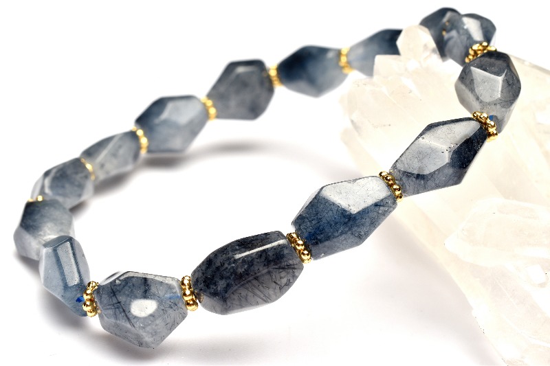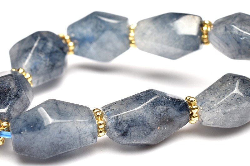 ブルールチルクォーツは別名「藍針水晶」と呼ばれていて、その名の通り「藍色がかった針状のもの」が内含されている石になります。