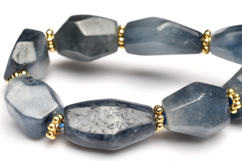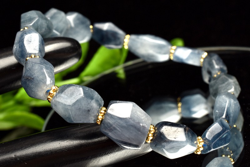 【1点物】希少◇ふわり藍色針 インディゴライトインクォーツ 10-12x8-9mm 原石ラフカット ブレスレット _MB186