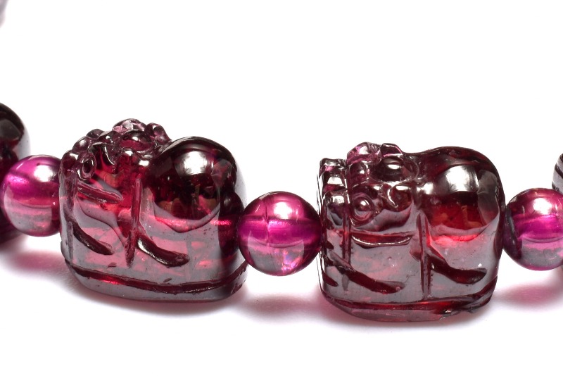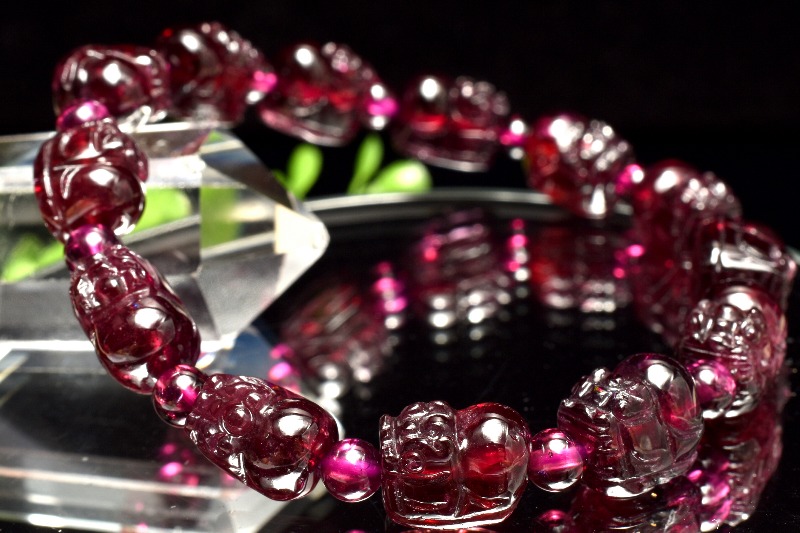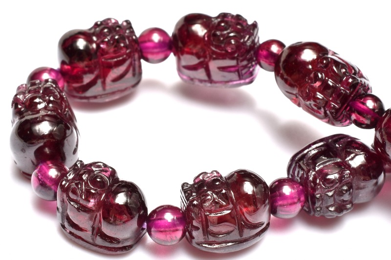 【1点物】透過性あり◇高品質 ロードライトガーネット 11-12x8(丸玉4)mm 貔貅彫刻 ブレスレット _MB228