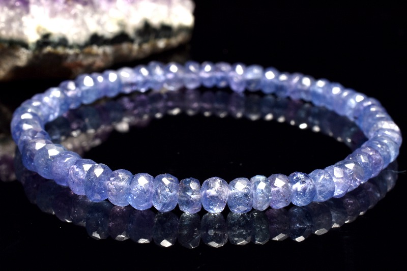 【1点物】AAA☆群青色の結晶 タンザナイト 3-3.5x5mm ボタン ブレスレット _MB292
