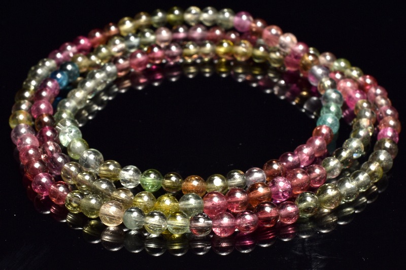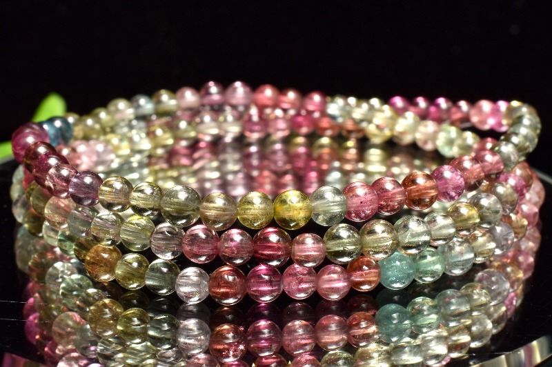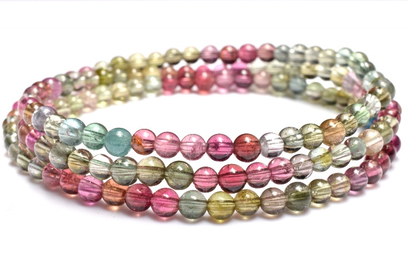 【1点物】AAA☆透過性抜群マルチカラー MIXトルマリン 4mm 3連タイプ ブレスレット _MB295
