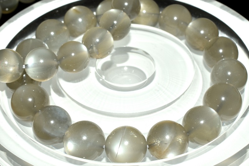 ムーンストーンの中でも、地色が淡灰色のものをグレイ・ムーンストーンと呼びます。地色はあまり派手ではありませんが、逆にシーン効果は明瞭になるため、ムーンストーン本来の美しさを楽しめます。