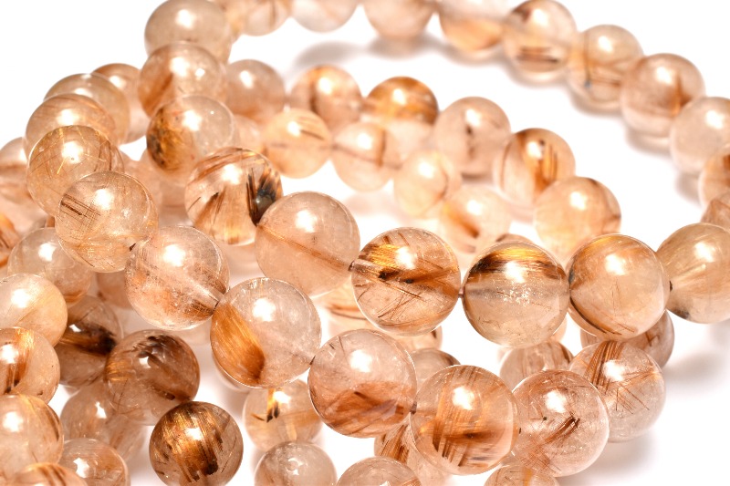 材質タイガータイチンルチルクォーツ 9.5mm 産地:ブラジル