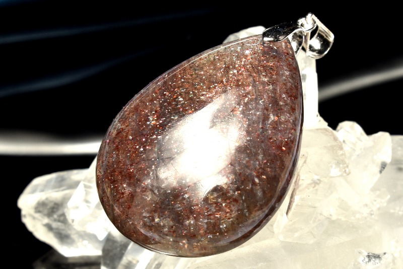 【1点物】Silver925◇ブラッドショット内包 アイオライトサンストーン 33x25mm ドロップ ペンダントトップ _PC6508