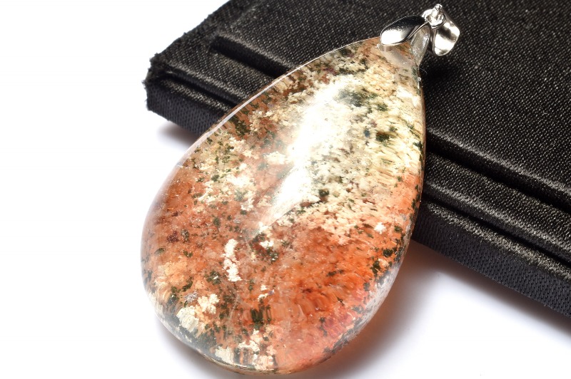 【1点物】Silver925◇庭園風景 ガーデンクォーツ 39x26mm ドロップ ペンダントトップ _PC6555
