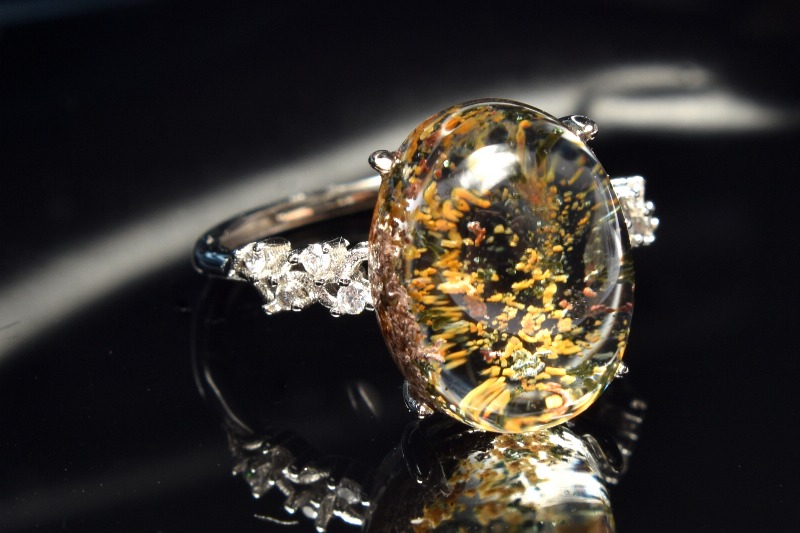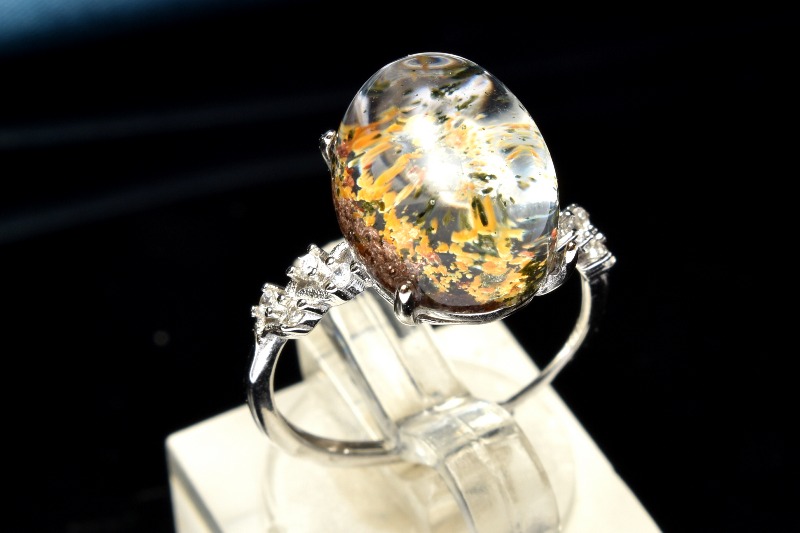 【1点物】Silver925◇庭園風景 ガーデンクォーツ 13x10mm オーバル 指輪リング(サイズ調整可) _PC6586