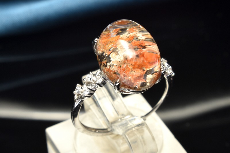 【1点物】Silver925◇庭園風景 ガーデンクォーツ 14x10mm オーバル 指輪リング(サイズ調整可) _PC6587