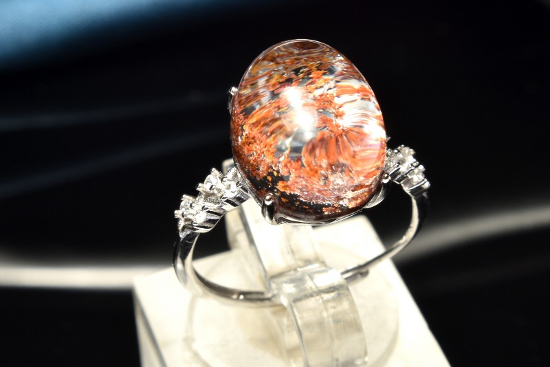 【1点物】Silver925◇庭園風景 ガーデンクォーツ 14x11mm オーバル 指輪リング(サイズ調整可) _PC6588