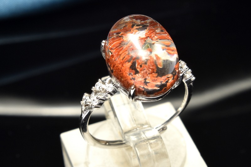 【1点物】Silver925◇庭園風景 ガーデンクォーツ 14x11mm オーバル 指輪リング(サイズ調整可) _PC6590