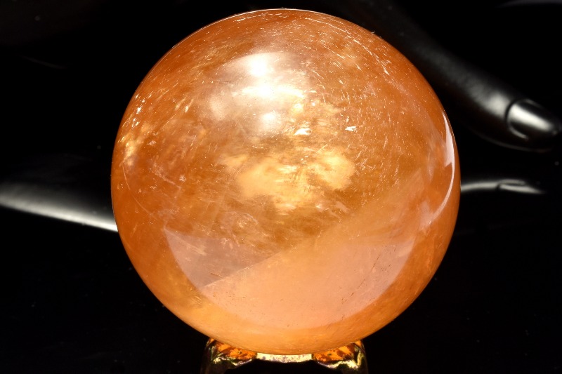 【1点物】キャッツアイ効果 イエローカルサイト 61mm 丸玉(台座付き) スフィア _CG6716【宅急便のみ】