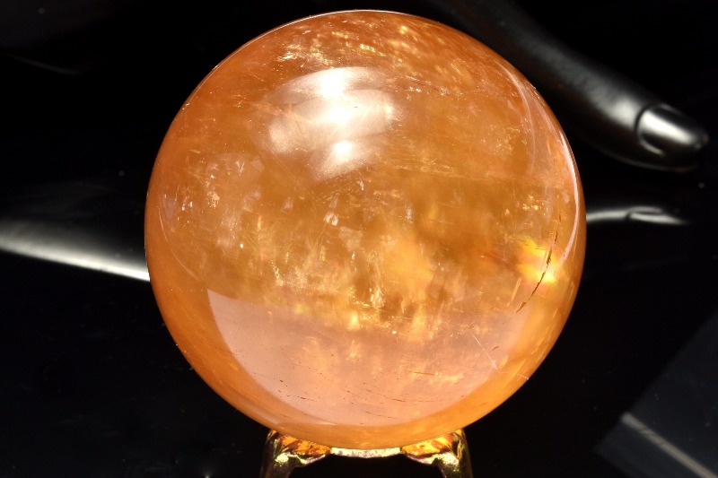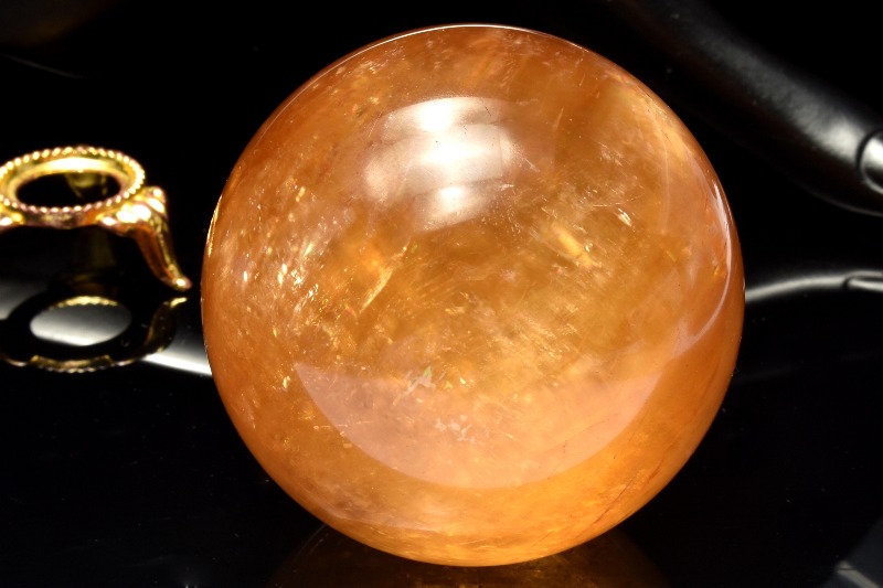 【1点物】キャッツアイ効果 イエローカルサイト 62mm 丸玉(台座付き) スフィア _CG6717【宅急便のみ】