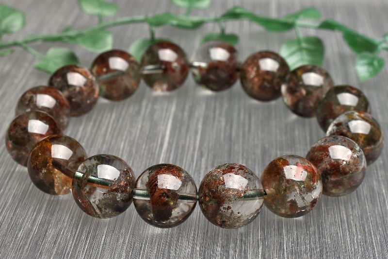 【1点物】透明◇レイヤー ガーデンクォーツ 13.5mm ブレスレット _U7735