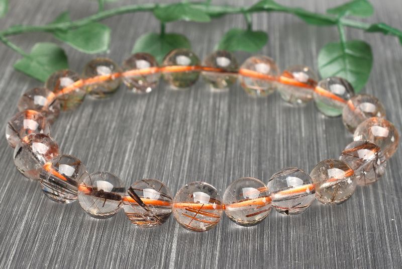 【1点物】秋カラー ブロンズルチルクォーツ 9mm ブレスレット _U7747