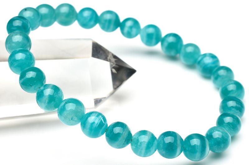 ブルーグリーンカラーとロシア産の特徴の縞模様が可愛らしいブレスレットです。