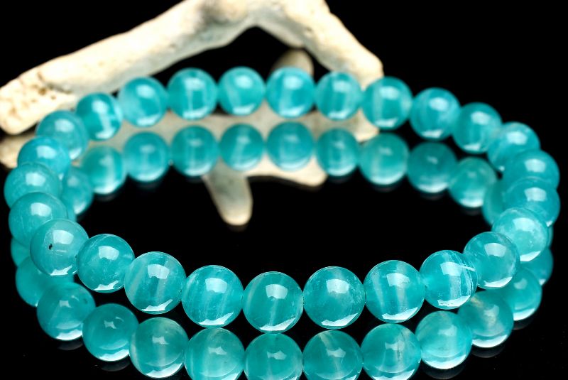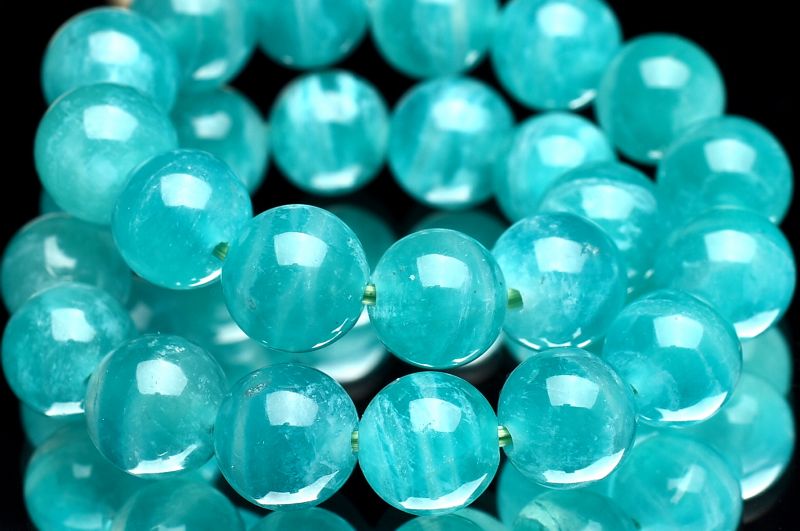 心を和ませてくれるような美しくやわらかな青緑色は、形成成分に含まれる鉛イオンによるものです。表面はガラス光沢か真珠光沢を放っており、四角柱状で産出することが一般的です。ほとんどが不透明で、ヒスイにも似た固体があり、それらはアマゾンジェードと呼ばれています。ヒスイの代用品として使われたこともあるようです。