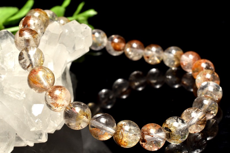 【1点物】ヒマラヤ産◇ライモナイト入り エレスチャルクォーツ 7.5mm ブレスレット _MC1