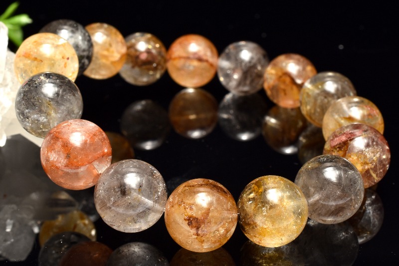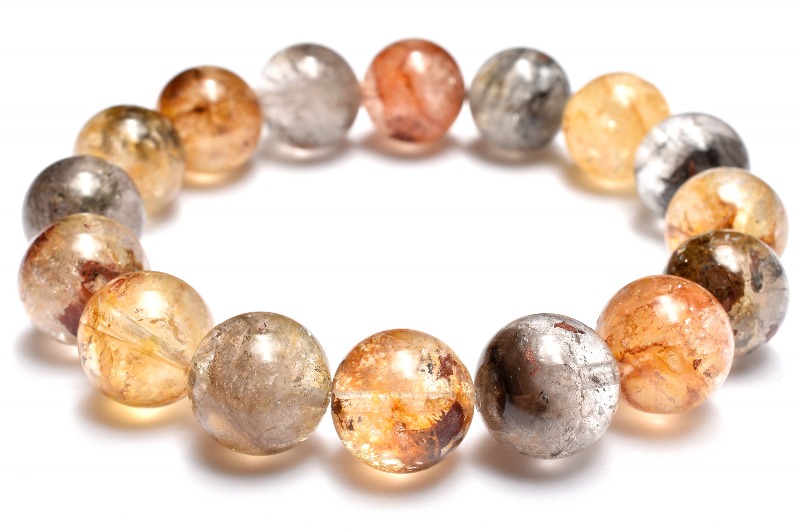 【1点物】ヒマラヤ産◇ライモナイト入り エレスチャルクォーツ 13.5mm ブレスレット _MC3