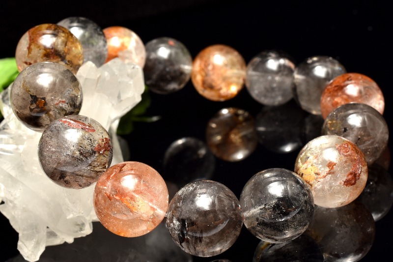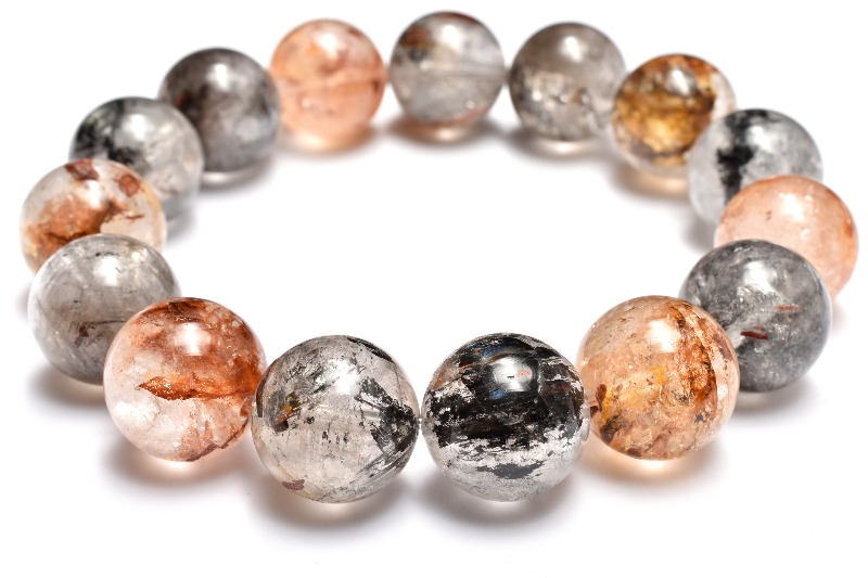 【1点物】ヒマラヤ産◇ライモナイト入り エレスチャルクォーツ 14.5mm ブレスレット _MC5